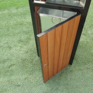 تم تصنيعها من مواد عالية الجودة مثل الخشب والحديد المقاومين للمطر والشمس ومختلف الظروف الجوية، مما يضمن تحملها واستدامتها على المدى الطويل. ومع وعاء داخلي كبير الحجم، لن تحتاج الي تفريغها عدة مرات في اليوم، كما تأتي مع جزء منفصل من الأعلى مخصص لإطفاء السجائر بشكل آمن، مما يساهم في الحفاظ على نظافة المكان.