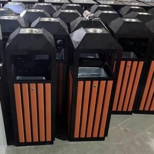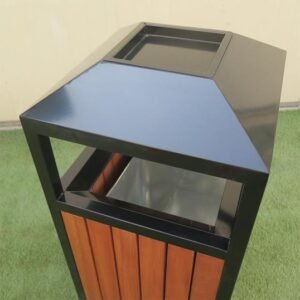 سلة نفايات مثالية للاستخدام في الحدائق، المناطق العامة، والمولات، تتميز بتصميم مربع مزود بفتحات من جميع الجوانب. تتميز هذه السلة بلمسة خشبية تغلف الأربعة جوانب، مما يضفي عليها شكلًا جماليًا وانسيابيًا.